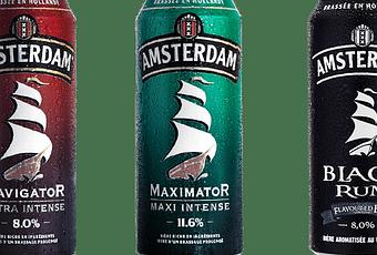 Vendue dans plus de 20 pays dans le monde, la bière Amsterdam se décline en 3 breuvages: Navigator, Maximator et Black Rum. Comme vous pouvez l'imaginer et le voir sur le packaging, l'univers de la marque est intimement lié à la ville d'Amsterdam et en particulier à son histoire et ses liens étroits avec l'univers marin.