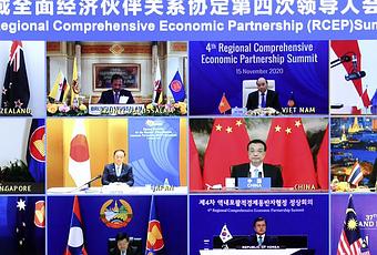 Le 15 novembre 2020, quinze pays de la région Asie-Pacifique ont signé un accord de libre-échange appelé Partenariat régional économique global (RCEP) :