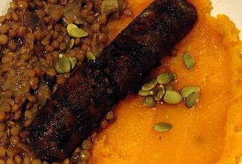 Avec ça des saucisses Gusta "forestières", et des graines de citrouille.