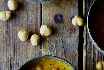 Soupe de potimarron , pancetta et noisettes