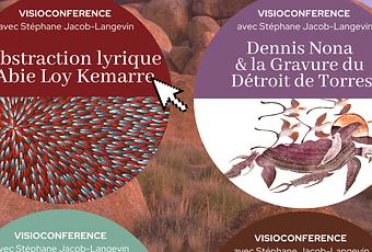 Ces visioconférences animées par Stéphane Jacob-Langevin sont des formats thématiques, suivis d'un temps d'échange. L'occasion de s'évader dans le Temps mythique du rêve et d'apprivoiser les oeuvres d'artistes aborigènes et insulaires du détroit de Torres.