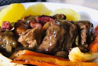 " data-image-meta="{"aperture":"1.8","credit":"","camera":"iPhone 8","caption":"","created_timestamp":"1607264346","copyright":"","focal_length":"3.99","iso":"100","shutter_speed":"0.083333333333333","title":"","orientation":"0"}" width="595" data-medium-file="https://latelierdeboljo.files.wordpress.com/2021/01/boeuf-bourguignon-et-ses-petits-legumes-rotis-au-four-001.jpg?w=300" data-permalink="https://latelierdeboljo.wordpress.com/2021/01/22/boeuf-bourguignon-et-ses-petits-legumes-rotis-au-four/boeuf-bourguignon-et-ses-petits-legumes-rotis-au-four-001/" alt="" height="446" srcset="https://latelierdeboljo.files.wordpress.com/2021/01/boeuf-bourguignon-et-ses-petits-legumes-rotis-au-four-001.jpg?w=595&h;=446 595w, https://latelierdeboljo.files.wordpress.com/2021/01/boeuf-bourguignon-et-ses-petits-legumes-rotis-au-four-001.jpg?w=150&h;=113 150w, https://latelierdeboljo.files.wordpress.com/2021/01/boeuf-bourguignon-et-ses-petits-legumes-rotis-au-four-001.jpg?w=300&h;=225 300w, https://latelierdeboljo.files.wordpress.com/2021/01/boeuf-bourguignon-et-ses-petits-legumes-rotis-au-four-001.jpg 640w" class="aligncenter wp-image-23427 size-large" data-large-file="https://latelierdeboljo.files.wordpress.com/2021/01/boeuf-bourguignon-et-ses-petits-legumes-rotis-au-four-001.jpg?w=595" />Dans sa plus grand simplicité et sans chichi, un boeuf bourguignon dans sa version classique sauf pour les petits légumes qui l’accompagnent. On peut y ajouter à l’envi des pommes de terre à l’eau.