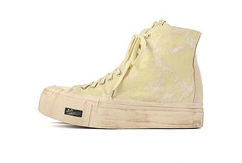 Visvim propose cette saison une nouvelle version G.Pattern de sa célèbre Skagway Hi. La paire est conçue à la main avec une toile japonaise enduite de pigments, un intérieur en cuir et une semelle en gomme. Elle est déclinée en trois coloris (ivory, light green, olive) et vient de sortir au Japon.