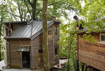 Ce grimpeur-élagueur, monteur de chapiteaux, a choisi de vivre perché au milieu des arbres et d'y construire sa maison.