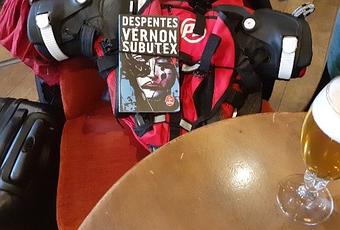 (V.O: Débouler, hagard de Montparnasse, avec 6 kilos de fringues dans la valoche, lâcher une pièce jaune au gus à l'angle de la rue de la Gaîté et de l'avenue du Maine, casser mon dernier bifton pour boire une bière sans faux col, ni Comté en souriant à cette putain d'ironie du sort: lui, là, le clodo à l'angle de la rue, il sait où il dormira ce soir.