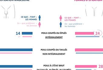 Malgré cette évolution notable, les femmes restent soumises à une pression à la dépilation nettement plus forte que les hommes : seuls 21% hommes hétérosexuels apprécient les pubis féminins avec tous leurs poils, soit un niveau d’acceptation à leur état naturel beaucoup plus faible que ce que l’on observe pour les pubis masculins lorsqu’on interroge les femmes hétérosexuelles (41%) sur le sujet. Révélatrice du regard particulier de la société sur le poil féminin, cette différenciation entre les sexes transparaît tout particulièrement dans l’injonction à l’épilation intégrale qui s’avère deux fois plus pesante pour les femmes (32%) que pour les hommes (14%).