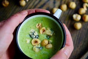 Soupe de brocolis au silton et aux noisettes