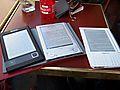 Rencontre avec Alain, hier soir, en terrasse au coin de la rue de l'Odéon. L'occasion de prendre en main le fameux Kindle d'Amazon qui suscite tellement de débats Outre-Atlantique. L'endroit idéal pour ouvrir Ulysse, une pensée pour Adrienne Monnier... Minitel écrasé, désign désastreux, mauvaise ergonomie, on en a tellement entendu sur son compte. Et bien, je dois dire que tout cela est bien exagéré et que ce sont des faux procès, de l'esbrouffe, il faut bien le dire. Plastique de qualité, souplesse des