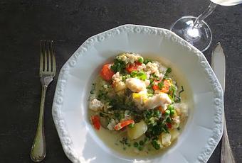 La recette prévoyait du saumon, j'avais envie d'un poisson moins gras et j'ai choisi de la julienne. Je pense que j'aurais dû prendre un poisson blanc plus ferme (p.e. dos de cabillaud), car la julienne s'est défaite un peu à la cuisson.