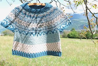 J'ai récupéré quelques pelotes de De Rerum Natura et en cherchant les modèles qui avaient été réalisés avec ces pelotes, je suis tombée sur le Soldotna Crop. C'est un pull que j'avais vu passé sur les réseaux sociaux et que j'avais trouvé hyper joli, en plus, je rêve depuis un moment de faire du jacquard et je trouvais la forme originale et idéal pour un pull de mi-saison. Banco !