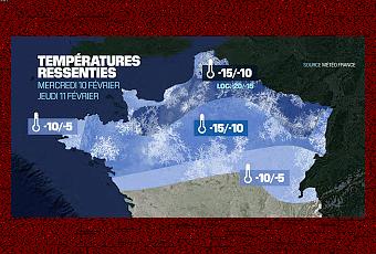 Idem pour les températures. -7 à Strasbourg : Pas de quoi faire frémir les oreilles d’éléphant d’une coiffe traditionnelle alsacienne. Mais si on annonce : -17 ressenti, alors là, c’est le live garanti. Et l’on retrouve notre envoyé spécial en direct depuis Souffelweyersheim, engoncé dans une doudoune Northface ou Canadian Goose, expliquant d’un ton grave : « Derrière moi le froid », alors là c'est tout bon.