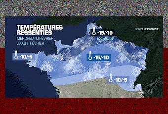 Idem pour les températures. -7 à Strasbourg : Pas de quoi faire frémir les oreilles d’éléphant d’une coiffe traditionnelle alsacienne. Mais si on annonce : -17 ressenti, alors là, c’est le live garanti. Et l’on retrouve notre envoyé spécial en direct depuis Souffelweyersheim, engoncé dans une doudoune Northface ou Canadian Goose, expliquant d’un ton grave : « Derrière moi le froid », alors là c'est tout bon.