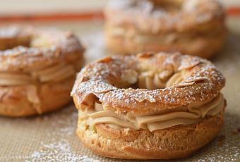 Je vous donne ici la recette de la version originale en forme de couronne avec des amandes effilés et la version du chef Conticini qui poche une couronne faite de plusieurs petits choux et qui remplace le croquant des amandes effilés par un craquelin. C’est du coup plus sucré mais aussi plus gourmand et au niveau esthétique ça en jette beaucoup plus car le craquelin permet d’avoir des choux à la forme parfaite.