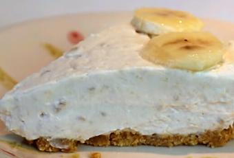 Faites sortir votre gâteau du congélateur, démoulez puis décorez avec les rondelles de banane.