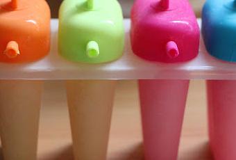 Donc, j'ai trouvé ces petits moules cet été et on a fait plein d'essais tous très concluants : jus d'orange, jus de pomme, eau à la grenadine, coca,...il suffit de congeler :)
