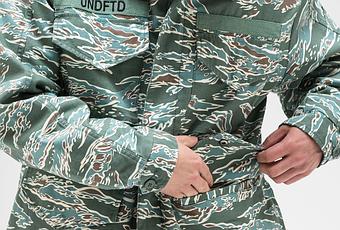 On a laissé le label angelino sur la sortie de deux nouvelles Air Max 97 x Undefeated. Aujourd’hui, celui-ci nous intéresse pour la sortie du drop 1 de sa collection SS21. Au centre de cette nouvelle collection on retrouve le célèbre “Tiger Camo” qu’on a vu chez plusieurs labels les saisons passées. Teinté de vert ou d’un jaune pale, celui-ci habille notamment un short et une veste type militaire. Le logo du label californien est également présent sur de nombreuses pièces, sous une forme écrite comme sous la forme plus graphique. Cette SS21 Undefeated propose également plusieurs items plus classiques et sportswear. Ce premier drop est, en outre, constitué de plusieurs shorts, accessoires, hoodies, chemises et autres vestes. Les couleurs sont très estivales et oscillent entre le blanc, le gris, le vert d’eau ou encore le jaune pale.