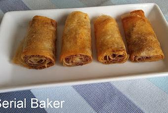 - facultatif : cannelle en poudre, vanille en poudre...Préparer la farce : dans un bol, mélanger la poudre d'amandes, 2 cuillères à café d'eau de fleur d'oranger et une grosse pincée des épices choisies.Faire fondre le beurre. Etaler une première feuille de brick sur le plan de travail. Badigeonner de beurre fondu avec un pinceau. Recouvrir d'une deuxième feuille, badigeonner de beurre fondu, recommencer pour chaque feuille de brick.Répartir grossièrement la farce sur la surface de la feuille du dessus (pas besoin de s'appliquer). Réaliser un rouleau assez serré. Découper en 8 morceaux avec un couteau. Placer dans un plat allant au four. Badigeonner le dessus de chaque roulé avec le reste de beurre fondu.