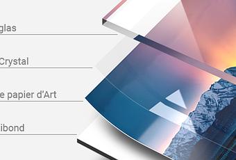 - Plaque de verre acrylique + photo avec filtre anti-UV + plaque d’aluminium : c’est à ce jour le support « haut de gamme » proposé par les maisons d’impressions