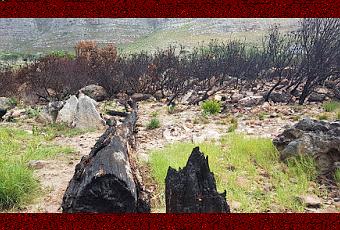 chaque année au cap il y a des incendies, comme dans tous les pays où il fait chaud et où la nature est omniprésente et encore assez sauvage. c'est impressionnant d'autant que les maisons s'étendent dans la forêt, que le bush est partout (ici on appelle ça le veld), et qu'un vent très violent souffle parfois l'été jusqu'à 100km heure, ce qui fait que les habitants ont parfois très chaud, les flammes s'arrêtant à quelques mètres de leur jardin... en été il n'y a pas de jour sans incendie. la plupart peu importants mais quand même... photos prise juste derrière chez nous ce we, avec encore une forte odeur de brûlé en bas des photos, les maisons à 5 mètres.