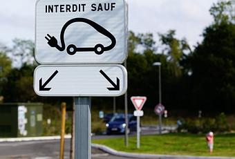 Ce sont des emplacements réservés exclusivement aux véhicules électriques qui vont recharger leur batterie à une borne. Ils sont gratuits, mais aucune voiture ne doit stationner au-delà du temps de recharge indiqué (ex. : 30 minutes). On reconnaît ces emplacements par des panneaux réglementaires d'interdiction avec mention " sauf véhicules électriques ", ajouté d'un pictogramme représentant un véhicule électrique. La signalisation est aussi accompagnée d'un marquage au sol. On retrouve ces signalisations dans :