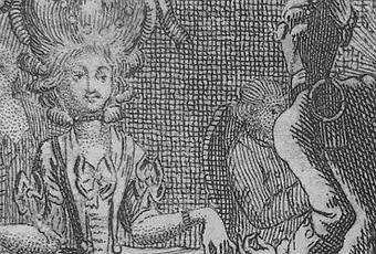 Dans les photographies de cet article, provenant d'une estampe d'un almanach allemand de 1779, avec du texte en allemand et en français, il ne s'agit pas d'une caricature, bien que la mise-en-scène le laisse à penser. C'est ainsi que l'on se coiffe, s'habille et danse à cette époque !