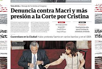 Clarín est allé jusqu’à mettre l’info à sa une avec photo, malgré l’actualité nationale très chargée en ce lendemain d’ouverture de la nouvelle session parlementaire. Página/12et La Nación l’ont inscrit à leur une respective mais sans illustration.
