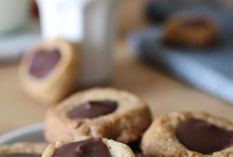 Ces petits sablés fourrés au chocolat, aussi appelés "biscuits "nids" sont la version française des fameux "tumbprint cookies" !