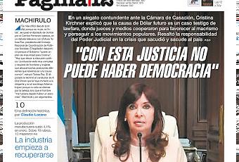 titre Página/12 en citant Cristina Kirchner, ici pendant son audition
