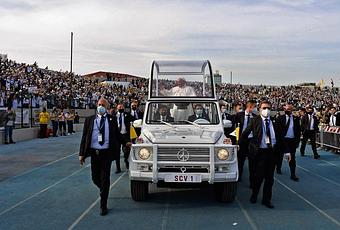 Le pape François, qui ne circulait qu'en avion, hélicoptère ou voiture blindée durant ses déplacements en Irak, a pu enfin passer sa journée de dimanche à proximité des fidèles de ce pays. Malgré tout, la sécurité autour de lui demeurait renforcée, d'autant plus que l'aéroport d'Erbil a été la cible d'une attaque aux roquettes fin février dernier.