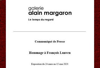 Galerie Alain Margaron-24 Mars au 15 Mai 2021 « Le temps du regard » Hommage à François Lunven