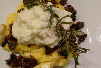Ajouter la farine pour polenta et cuire pendant 35 minutes tout en mélangeant