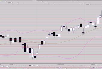 Après la sortie de la zone de dérive grâce au marubozu blanc formé lundi, hier c'est une petite bougie blanche "surfant" sur l'épaule de cette bougie blanche qui est apparue.Généralement, ce schéma classique dans une phase haussière annonce une poursuite immédiate de la hausse.Le marubozu blanc quasi parfait formé aujourd'hui est de grande taille et annonce d'ores et déjà une probable clôture hebdomadaire au dessus de la résistance des 5882 points .Cet accomplissement dans 2 séances entraînerait très probablement la progression vers la résistance des 6162 points correspondant au sommet de 2007.