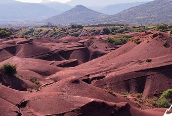 Dès le début de la rando, les enfants sont ravis de retrouver cette terre rouge, ou plutôt ce gravillon, si caractéristique de la région. Ils ne se lassent pas de monter et glisser sur les collinettes.