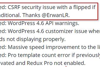WPScan et le plugin WordPress Redux ont tous deux signalé que la vulnérabilité CSRF a été corrigée.