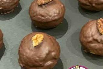 - Tant que le glaçage est encore liquide, placer une noix de pécan ou un cerneau de noix sur le dessus.