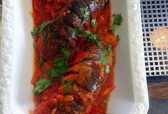 Servir les queues de homard sur la sauce, garnir avec des feuilles de coriandre