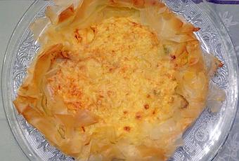Toujours pas envie de cuisiner, mais quand-même un petit creux. 4 feuilles de filo au frigo qui pourraient bien faire l'affaire ainsi qu'un triste poireau qui a retrouvé une bonne mine une fois que j'ai enlevé ses feuilles extérieures. Avec ces ingrédients sur le plan de travail j'ai trouvé grâce à Google une petite recette simple et rapide à préparer avec d'autres ingrédients que nous avons tous toujours en stock : des œufs, des restes de fromage, des oignons ou échalotes et une petite brique de crème fraîche. J'aime beaucoup les tartes salées et si je peux y incorporer les aliments que j'ai déjà à la maison et qui ne m'obligent pas à sortir pour faire des courses, je suis h e u r e u s e !