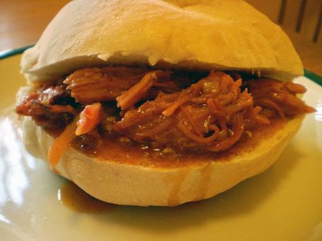 Cette méthode provient du sud des USA, là où de vénérables maîtres du barbecue se trouvent, élites ultimes de la société perdus parmi les joueurs de banjo édentés, les blondes à haute chevelure, les chapeaux de cowboys et autres clichés. Ce plat plaira de toute évidence aux carnivores confirmés - servir avec l’accompagnement traditionnel de salade de chou pour avoir un “légume vert” qui fait qu’on se sent moins décadent.