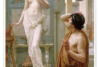 Un sculpteur de Chypre, inscrit en faux contre le mariage, en raison du comportement des femmes de Chypre qui se comportent en prostituées ou en sorcières, se consacre au célibat. Toutefois, en travaillant son ciseau de sculpteur, il tombe tout à coup amoureux de son oeuvre. Une statue d'ivoire représentant une femme. Vulnérablement déshabillée. Il se sent vivre. Une déesse fait mieux. Elle fait vivre sa statue pour lui. Ils sont amoureux heureux et auront deux enfants. Niant l'existence de la déesse créatrice de rêves, les prostituées et les sorcières sont punies d'un sort. Elles perdent toute pudeur. Se promenant ainsi nues, elles sont si vulgaires qu'elles seront finalement transformées en roche. Mais avec leur nudité, elles visaient la même nudité séductrice de la statue.