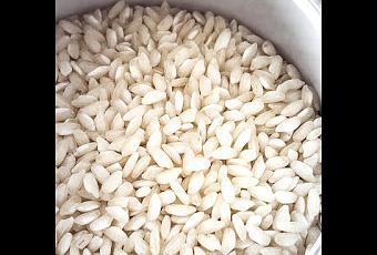 Pour cette recette, j’ai utilisé « la Rolls » des riz à risotto, l’Acquerello vieilli 7 ans ! Sa texture est parfaite après cuisson (encore al dente) et il rend beaucoup, mais alors beaucoup d’amidon, le rêve pour le risotto. Il existe une version un peu plus « courante » vieillie une année qui est déjà très bon !