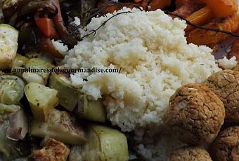 Scénario: Laver les légumes puis les sécher Couper les poivrons en lanières, la butternut en demie lune, les courgettes et les aubergines en cubes, les oignons en rondelles, les gousses d'ail écrasées Mettre les légumes dans un plat à four, tout en séparant chaque famille Saler, poivrer, parsemer l'origan, le laurier, la sauge, verser l'huile, Enfourner pour 50 à 60 minutes à 180° Montage: Cuire le boulgour comme indiqué sur le paquet, puis mettre en assiette harmonieusement les légumes, le boulgour, les falafels dans un bol Préparer une sauce avec 130 gr de skyr, 2 c à soupe de jus de citron, de l'ail semoule 1 c à café , 1 cà soupe de tahini, 1 c à café de moutarde, saler, poivrer, émulsionner. Répartir 2 c à café sur le buddha bowl ...et déguster! J'ai la chance d'avoir un potager et un congélateur, de ce fait je retrouve l'hiver des odeurs et des saveurs de l'été .
