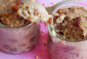 Aujourd'hui, je vous propose une Crème dessert au sarrasin et aux raisins (Vegan, sans gluten et sans sucre ajouté) (pour 2 personnes) :