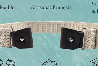Sans boucle ni trou, elle s’accroche sur les passants et s’ajuste parfaitement sur la taille grâce à une barrette en métal qui permet de serrer ou de desserrer le tissu élastique. « C’est le même principe qu’une bretelle, mais à l’horizontale ! », explique Audrey.