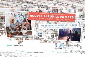 Ce titre justement, " Loin des yeux ", on a presque envie de compléter avec "près du coeur", a qui va cette expression ?Sylvain : Tout le monde. Nous, déjà, on a travaillé à distances ; pour nos invités qu'on n'a pas pu voir pour la plupart ; pour les gens qu'on ne verra pas pendant longtemps. Cet album s'adresse ànos fans, aux gens qui nous suivent, ceux qui nous connaissent pas ... ils sont tous loin des yeux.
