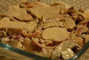 Déglacer avec le vin blanc, délayer les deux cuillères de moutarde, ajouter la crème fraiche, remettre le filet mignon et les oignons. Pour les champignons, j'ai vidé la boite à l'aide d'une grande cuillère car je voulais mettre un peu de jus (mais pas tout le jus de la boite).