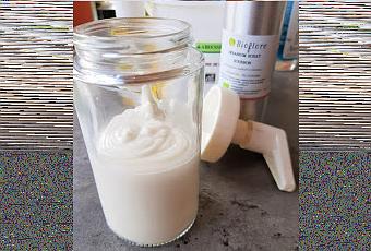 - 5,15g d'emulsifiant olivem (5%) - pour transformer l'eau et l'huile en émulsion (lait)