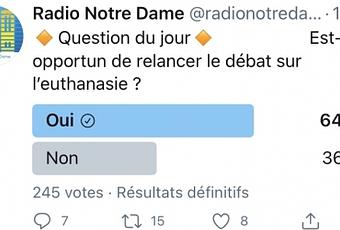 64% des auditeurs de radio notre-dame estiment qu’il est opportun de relancer le débat sur l’euthanasie.