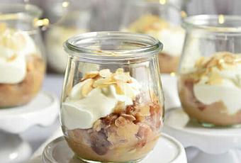 Faites sortir le saladier des pommes du frigo, répartissez-le dans 6 verres de présentation puis ajoutez en dessus votre crème.