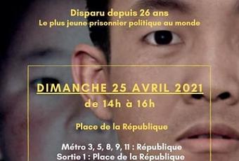A 14h, à République, rassemblement pour les 32 ans du Panchen-Lama , 2e autorité religieuse du Tibet, kidnappé en 1995 à l'âge de 6 ans.