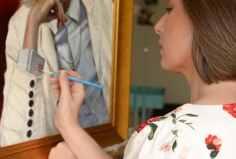 L’artiste Meg Brown avec sa peinture d’entrée au prix Archibald de l’acteur Barry Otto
